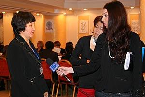 Rashida Naubetova, Chief Supervisor of the National Commission on Family Issues and Gender Policy under the President, gives an interview to journalists, Astana, 7 December 2007.