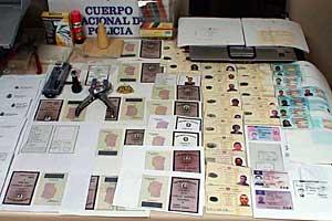 Forged documents confiscated by the Spanish Police from immigrants exploited for labour purposes, November 2007.
