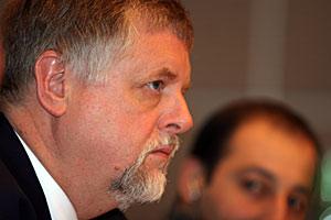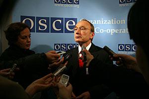 Ambassador Tim Guldimann, Head of the OSCE Mission in Kosovo, briefs the media on the Mission's role in the final stages of election preparations, Prishtine/Pristina, 15 November 2007.