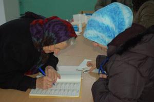 A voter signs the voter list to verify that she has received her ballot papers at "Jeta Re" secondary school polling station in Suhareke/Suvareka municipality, Kosovo, during the 17 November 2007 elections.