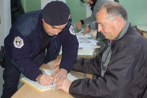 A Kosovo police officer casts his ballot at "Jeta Re" secondary school polling station in Suhareke/Suvareka municipality, 17 November 2007. Police officers were given time off to vote in the elections.