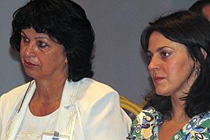 Marjeta Zace (left), Deputy Minister of Labour, Social Affairs and Equal Opportunities, and moderator Zana Vokopola at an OSCE workshop aimed at promoting women leader's active participation in government and public life, Tirana, 18 July 2007.