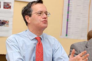 OSCE Secretary General, Marc Perrin de Brichambaut, talks to staff of the Mission in Kosovo during his visit to the region, Prizren, 23 July 2007.