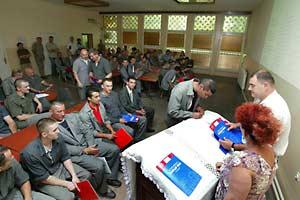 Inmates of the Sremska Mitrovica Penal Correctional Facility in Serbia wait to be awarded their diplomas under the facility's first education programme in 15 years, Sremska Mitrovica, 4 July 2007.