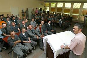 Dusan Makevic, governor of the Sremska Mitrovica Penal Correctional Facility in Serbia, addresses inmates at the graduation ceremony for the facility's first education programme in 15 years, Sremska Mitrovica, 4 July 2007.