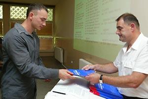 Vocational training instructors from Bozidar Adzija hand out diplomas to their students at Sremska Mitrovica Penal Correctional Facility in Serbia as part of the facility's first education programme in 15 years, Sremska Mitrovica, 4 July 2007.