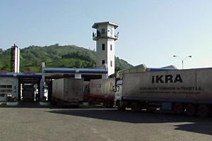 Cargo trucks at Sarpi, Georgia, on the border with Turkey, 17 May 2007.