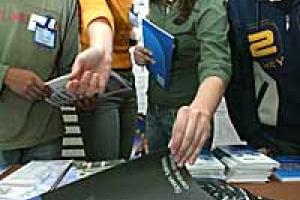 Participants browse through OSCE material prior to taking part in an "EU Youth Parliament" project that created mock debates giving students the opportunity to experience the procedures of parliament, Novi Sad, 18 May 2007.