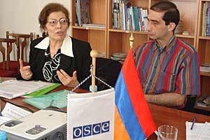 Aida Iskoyan (left), Head of the Environmental Public Advocacy Centre, explains the impact of the Aarhus Convention on Armenian environmental legislation to lawyers, judges and prosecutors at an OSCE-supported seminar, Yerevan, 17 May 2007.