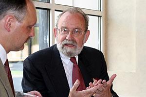 Bernard Snoy (right), Co-ordinator of OSCE Economic and Environmental Activities, interviewed in Prague, 21 May 2007.
