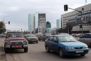 Traffic on a road in Astana, Kazakhstan, on 10 April 2007.