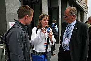 Ambassador Boris Frlec (right), who heads the OSCE/ODIHR observation mission, chats with short-term observers after a briefing in Yerevan, 9 May 2007. Parliamentary elections will be held in Armenia on 12 May.