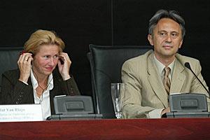 Ruth van Rhijn (left), Head of the Mission's Rule of Law and Human Rights Department, and Sinisa Vazic, President of the Belgrade District Court, at a conference on Serbia's new Criminal Procedure Code, Belgrade, 11 May 2007.