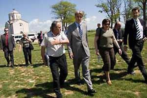 The Head of the OSCE Mission in Kosovo, Ambassador Werner Wnendt (centre) during one of his frequent visits to the field to show the Mission's support to municipalities, Podujeve/Podujevo, 11 May 2007.