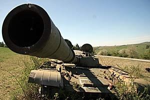 An old tank on the grounds of a military training facility in Hammelburg, Germany, April 2007.
