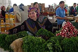 A woman selling vegetables at a market in Ashgabat on 12 April 2007.