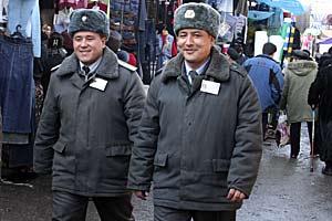 The OSCE High Commissioner on National Minorities promotes the use of ethnically-mixed police teams for patrolling multi-ethnic areas, Osh, Kyrgyzstan, 8 February 2006.