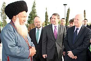 An imam at the Mosque of Spirituality in Kipchak guides Spanish officials and OSCE Chairman Miguel Angel Moratinos (right) during a visit to Turkmenistan, 12 April 2007.