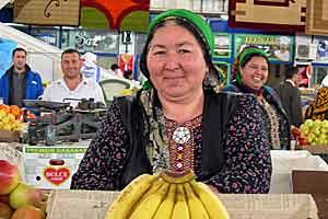 A woman selling fruit at a market in Ashgabat on 12 April 2007.