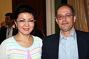 Miklos Haraszti (right), OSCE Representative on Freedom of the Media, with Dariga Nazarbayeva, member of Kazakh Parliament and Head of the country's Congress of Journalists, in Almaty, 20 April 2007.