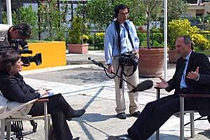 The Head of the OSCE Presence in Albania, Ambassador Pavel Vacek (right), gives an interview TVE, Spain's public-service television broadcaster, Tirana, 24 April 2007.