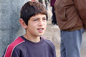 A Roma boy at a ceremony to mark the return of the Roma community to Roma Mahala, Mitrovice/Mitrovica, 30 March 2007.