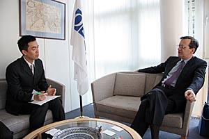 OSCE Secretary General Marc Perrin de Brichambaut during an interview with Kaoru Sakuraba (left), of The Nihon Keizai Shimbun, in Vienna, 2 April 2007.