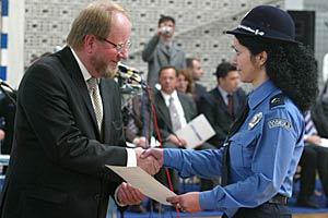 The Head of the OSCE Mission to Serbia, Ambassador Hans Ola Urstad, presents a certificate to a police officer, Bujanovac, 29 September 2006.