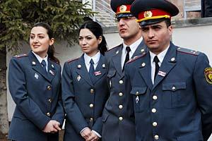 Police cadets stand in front of a re-opened police training Centre, in Yerevan, 23 March 2007. The Centre was renovated under the OSCE Police Assistance Programme.