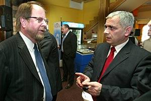 Nagip Arifi (right), Mayor of Bujanovac, talks with Ambassador Hans Ola Urstad, Head of OSCE Mission to Serbia, at the closing ceremony of a bar exam training course organized by OSCE and the Belgrade-based Projuris Organization, Bujanovac, 21 March 2007.