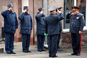 Police cadets and officers salute in front of the re-opened police training centre in Yerevan, 23 March 2007. The centre was renovated as part of the OSCE Police Assistance Programme in Armenia.