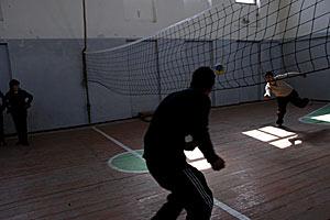 Children play in a school gym, in South Ossetia, 18 March 2007. A number of schools will be reconstructed under an international programme for the economic rehabilitation of the Georgian-Ossetian conflict zone.
