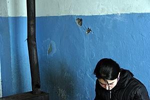 A boy stands next to a house in South Ossetia, 18 March 2007. A number of schools and hospitals will be reconstructed under an international programme for the economic rehabilitation of the Georgian-Ossetian conflict zone.