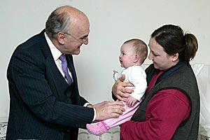 The Head of the OSCE Mission to Croatia, Ambassador Jorge Fuentes, meets a mother and her 6-month-old baby girl during a visit to a centre for refugees in Nova Pazova, Vojvodina, 16 February 2007.
