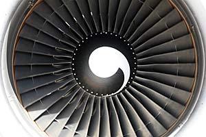 A turbine of a jet plane sitting on the runway of an airport in Madrid, February 2007. The OSCE Forum for Security Co-operation is addressing the issue of combating the illicit trafficking of small arms and light weapons by air.