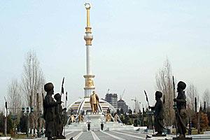 A golden statue of Turkmenbashi, the late leader of Turkmenistan, in Ashgabat, February 2007. A new president will be elected on 11 February.