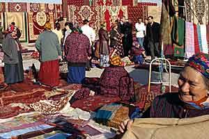 An outdoor carpet market in Ashgabat, February 2007.