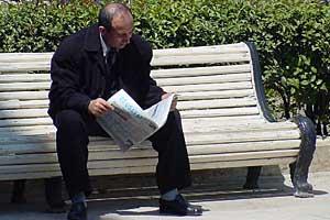 A resident of Baku reads a local newspaper, 22 July 2003.