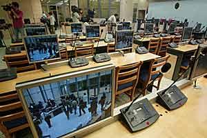 Courtroom No. 1 is housed in Belgrade's District Court where a special department was established in 2003 to hear cases relating to war crimes and organized crime.