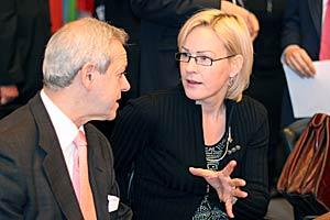Eva Biaudet (R), the OSCE Special Representative and Co-ordinator on Combating Trafficking in Human Beings, at the Permanent Council in Vienna, 18 January 2007.