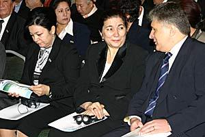 Ambassador Miroslav Jenca (right), OSCE Project Co-ordinator in Uzbekistan, speaks with Mashkura Safaeva, Deputy Speaker of the Lower House of Uzbekistan's Parliament, at a ceremony in Tashkent 19 January 2007.