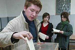 A young man in Belgrade casts his ballot during Serbian parliamentary elections on 21 January 2007.