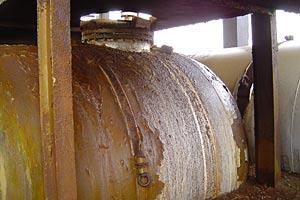 A corroding container holding "melange", a decaying and highly toxic component of outdated rocket fuel, Kazakhstan, 1 November 2005.
