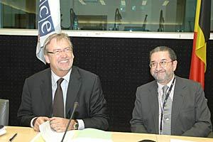 Special Envoy of the Belgian OSCE Chairmanship, Pierre Chevalier (left) and the Head of Spain's Permanent Mission to the OSCE, Carlos Sanchez de Boado, at a meeting of the Troika with the Asian Partners for Co-operation, Brussels, 3 December 2006.