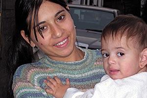 A young mother holds her tiny two-year old child at a Roma settlement in western Serbia, 22 November 2006. Roma women often wed very young, lacking financial opportunities to support themselves.