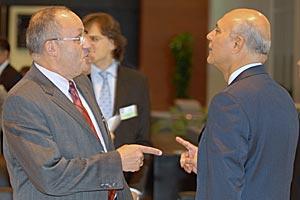 From left: Amb. Dan Ashbel, Head of the Delegation of Israel to the OSCE, and Amb. Ramzy Ezz Eldin Ramzy, Head of the Egyptian Delegation, discuss at the 2006 OSCE Mediterranean Seminar in Sharm El-Sheik, 6 November 2006.