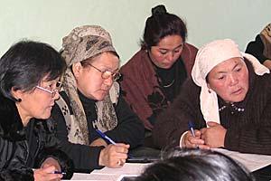 Women discussing cases of domestic violence during a discussion organized by the OSCE Field Office in Osh, 23 November 2006.