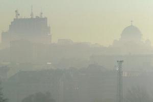 The Temple of Saint Sava, pictured on the right, one of Belgrade's landmarks, is barely visible in the distance because of the morning pollution.