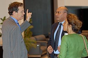 From left: OSCE Secretary General Marc Perrin de Brichambaut speaks with Tareq Mahmoud from Middle East News Agency and Dr. Magda Safwat Baraka from the Egyptian Foreign Ministry at the 2006 OSCE Mediterranean Seminar in Sharm El-Sheik, 6 November 2006.