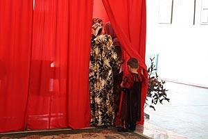 A young girl watches family members vote in Dushanbe during Tajikistan's 6 November 2006 presidential election.